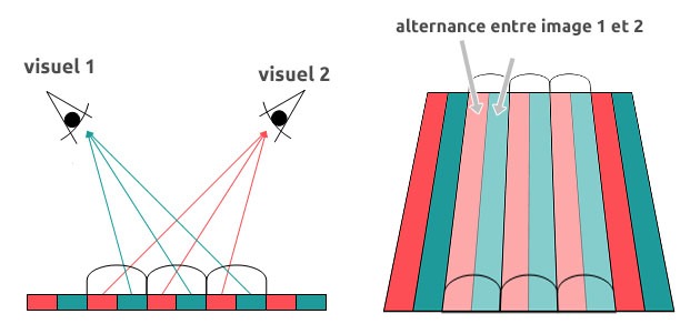 L’impression lenticulaire est un procédé permettant d’afficher 2 images différentes sur un même tableau