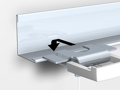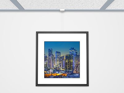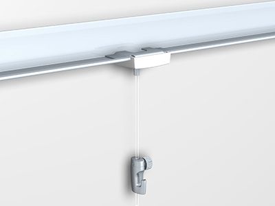 Système d’accrochage par cimaise pour faux plafond très pratique et simple d’utilisation (ceiling hanger). Il permet de suspendre des tableaux sans avoir a percer le mur. Le système se clipse au rail du faux plafond, voir photos. la hauteur du tableau est réglable et vous pouvez accorcher plusieurs tableaux sur un fil.